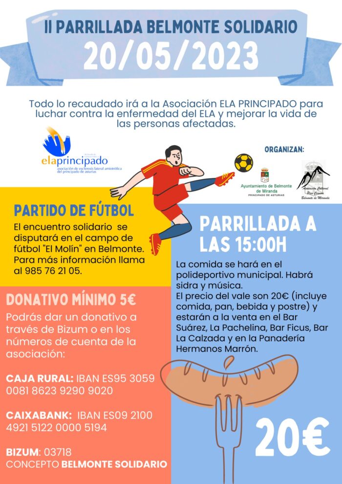 El próximo 20 de Mayo la “II Parrillada Belmonte Solidario” se une a la lucha contra la ELA. La parrillada se celebrará en el polideportivo municipal a las 15 horas y los vales se pueden adquirir en varios establecimientos de la localidad. También se ha habilitado una fila 0 para donativos a través de transferencia…
