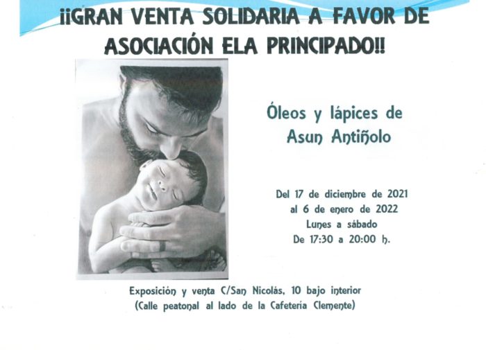 Asun Antiñolo, pintora y afectada de ELA , puso en marcha el pasado mes de Diciembre una iniciativa solidaria para colaborar con nuestra asociación. La venta solidaria de diferentes obras de la artista (óleos y lápices), que en principio finalizaba el 6 de Enero, ha sido prorrogada aunque cambia su ubicación. Hasta el 31 de…