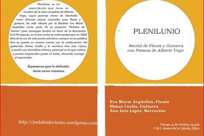 9 de Octubre de 2010 Como colofón al reto 1000 km por la Ela, el próximo 31 de Octubre en el Ateneo de la Calzada de Gijón, tendrá lugar un encuentro de música y poesía. Será a las 19 horas y la entrada será gratuita. Piazzolla, Villa-Lobos, Bartok y los poemas de Alberto Vega serán…