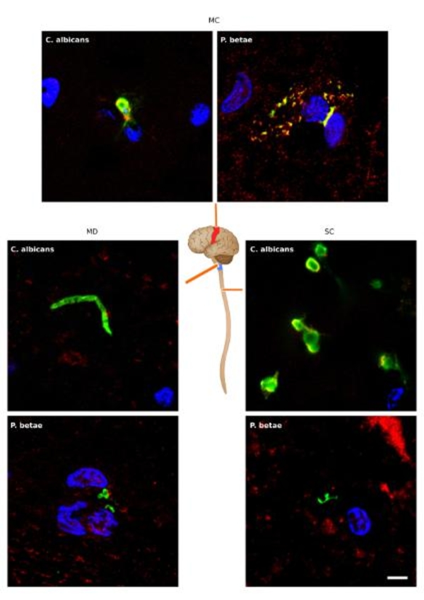 Las estructuras fúngicas presentes en el cerebro fueron detectadas por los científicos a través de inmunofluorescencia, usando anticuerpos que reaccionan específicamente contra proteínas de hongos.