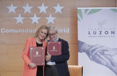 Francisco Luzón, presidente del Patronato y Fundador de la Fundación que lleva su nombre, y Cristina Cifuentes, presidenta de la Comunidad de Madrid, han suscrito hoy un convenio de colaboración para contribuir a la investigación y a la lucha contra la Esclerosis Lateral Amiotrófica (ELA).